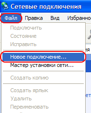 3. В верхнем левом углу строка «Создание нового подключения»