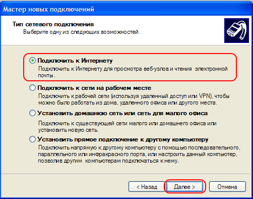 5. Выбираем пункт «Подключить к интернету», «Далее»
