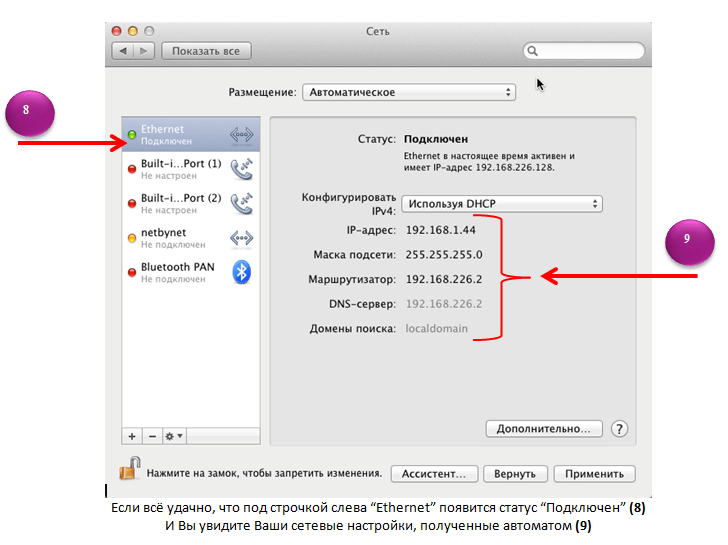 9. Вы увидите ваши сетевые настройки, полученные автоматом.