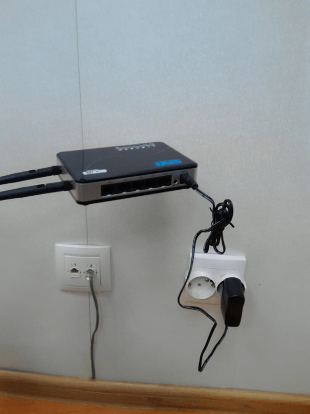 2. Подключаем блок питания к роутеру и розетке. Подключаем кабель интернета в гнездо WAN.