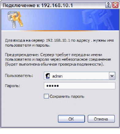 Если все перечисленное уже сделано, то теперь заходим в веб-интерфейс, для этого открываем любой браузер. В адресной строке вводим 192.168.10.1 и нажимаем «Enter». Логин и пароль по умолчанию admin/admin.