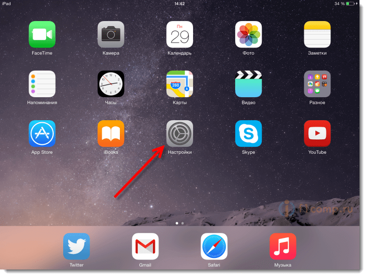 Первым делом, нужно зайти в настройки. Просто нажмите на соответствующую иконку на рабочем столе.