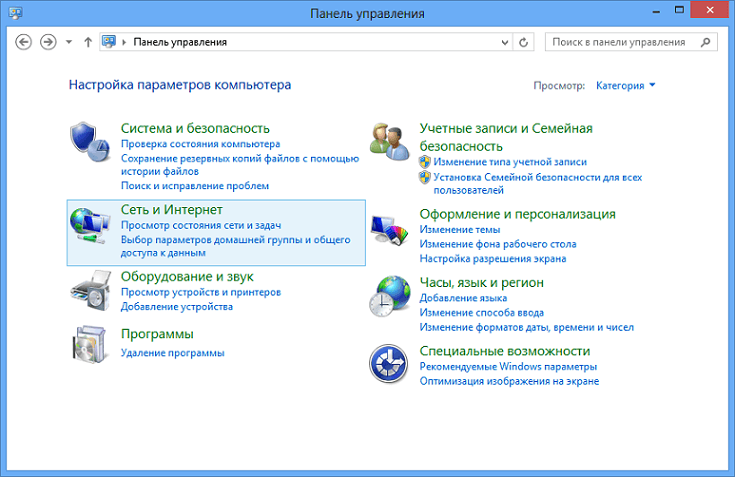 1.3. В окне «Панель управления» необходимо щелкнуть по значку «Сеть и Интернет».